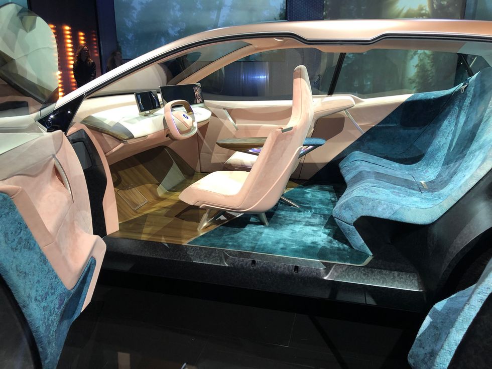 Instead of wowing the driver with huge touch screens, BMW has kept technology to a minimum and instead focuses on creating a sense of calm and comfort. Further emphasizing BMW's plans for creating a lounge on wheels, the Vision iNext has a wooden floor, large windows, and very little in the way of traditional vehicle controls.