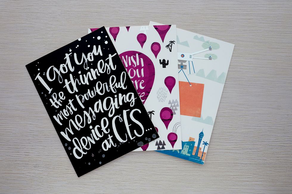 So if you're not heading to CES before the close of the show Sunday, there's likely a drug store or card shop somewhere close to your home where cards can be found. If you can afford a cup of coffee, you can pluck down for a paper-crafted missive. No, it's not you, beaming into the next room via digital projection. It's better. It's a physical artifact, you physically touched, then sent to someone who filled your thoughts for a moment in time. And — it will never eat up your data plan.