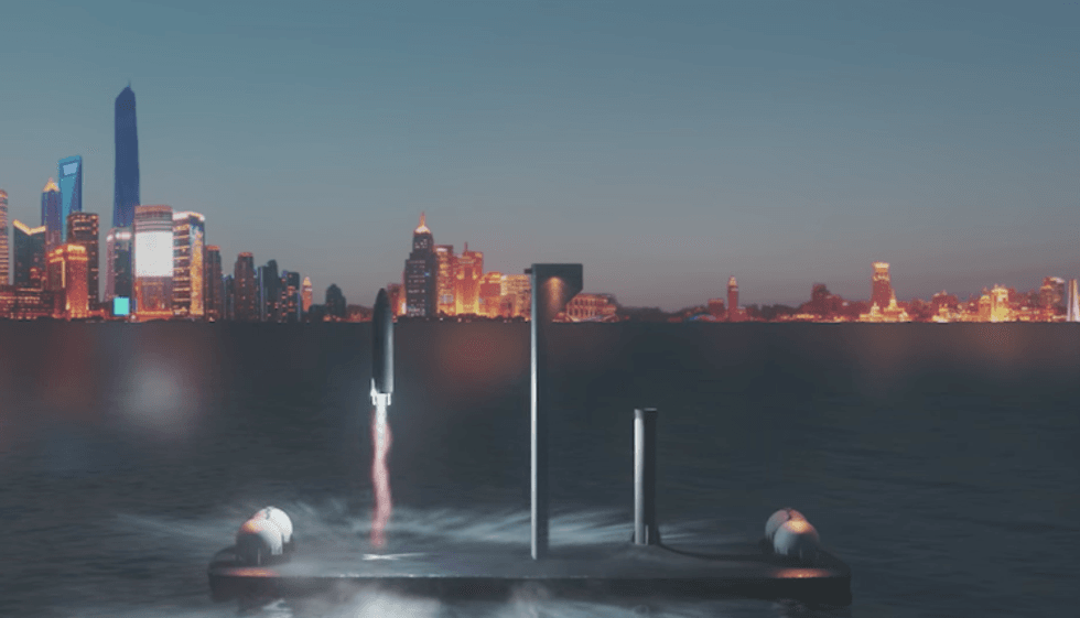 A computer simulation published by SpaceX shows how passengers would take a boat from a city harbour to a barge, acting as a launch pad for the rocket, which Musk refers to as 'Big F***ing Rocket' or BFR for short.