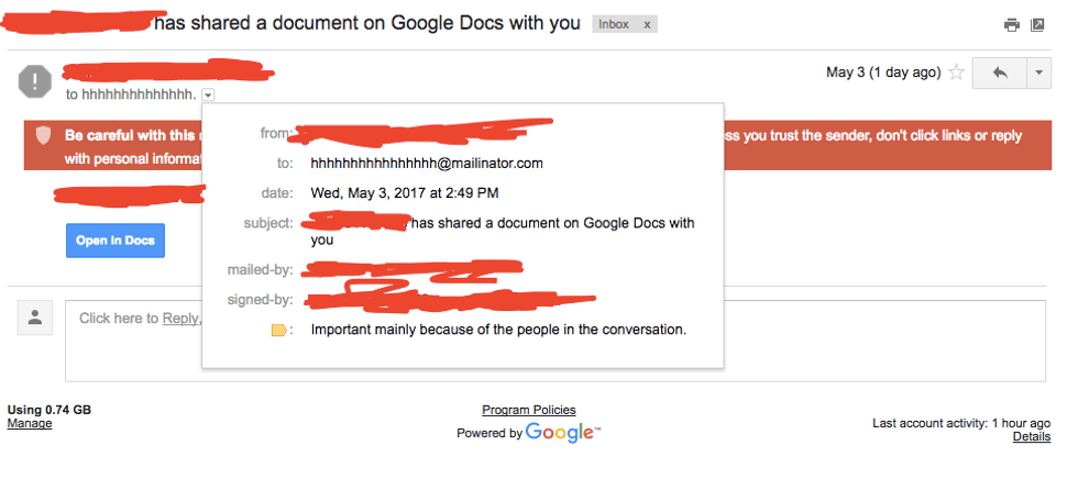 Even though Google responded quickly on the same day the phishing happened, more than a million users were still affected so really, everyone is on their own in some way while dealing with these scams. Remember — anyone can be the subject of hacking so don't be embarrassed or discouraged. Instead, educate yourself on how phishing works and what you can do to prevent further attacks.