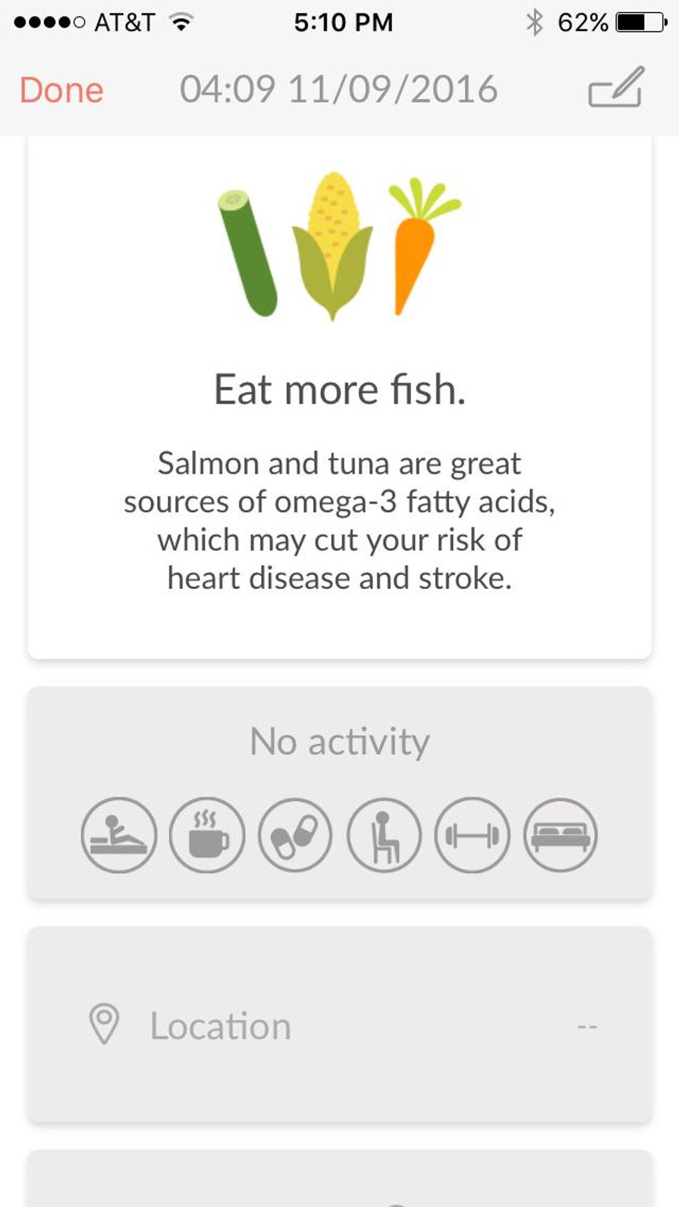I answered them all, and started on the reading. Turning on the device, a red light glow from the side with the sensor. You press, lightly, with your thumb and the app immediately gives you a three-second countdown. As the reading starts, the screen will tell you if the reading isn't working, if you're moving your hand too much and need to start again. The entire reading takes about 10 seconds, and produces not only your MOCA Index but also your heart rate, blood oxygen levels and a nice message such as suggesting you eat more fish or plan more time to exercise.