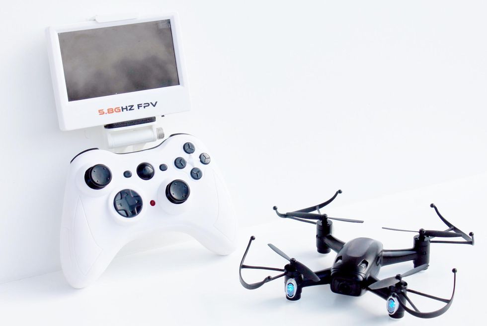 Stats: Weighing just 2.4 ounces, this drone does not need to be registered with the FAA. The Black Talon 2.0 FPV includes adjustable max tilt (speed), is self leveling on by default, has nice LEDs and protective bumpers for the props. The drone also includes return to home, stunt mode, Wi-Fi FPV with a 720p Wi-Fi camera that can record stills or video directly to your phone or tablet, and has good durability.