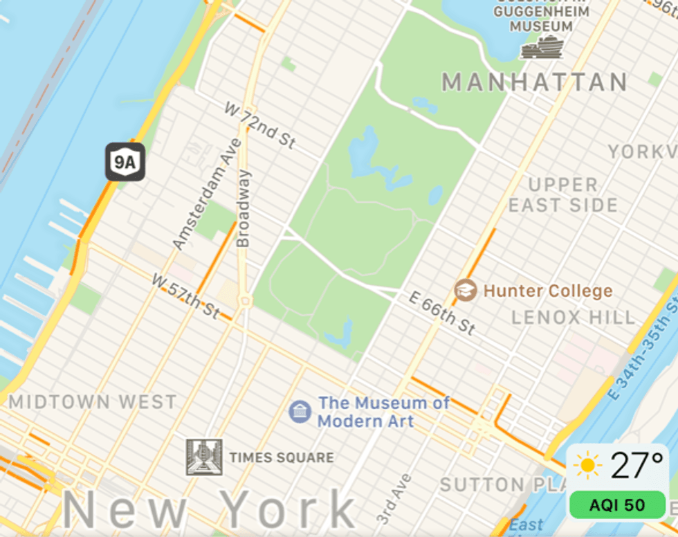 Apple just gave Maps another boost adding an Air Quality Index (AQI) feature. The numbers appear in the lower right, just below the current temperature. It's a dynamic feature, and very specific to the location you're searching — even within a city — and the colors also change in a bar from green when air quality is good, to yellow when it's moderate all the way to maroon when it's hazardous.