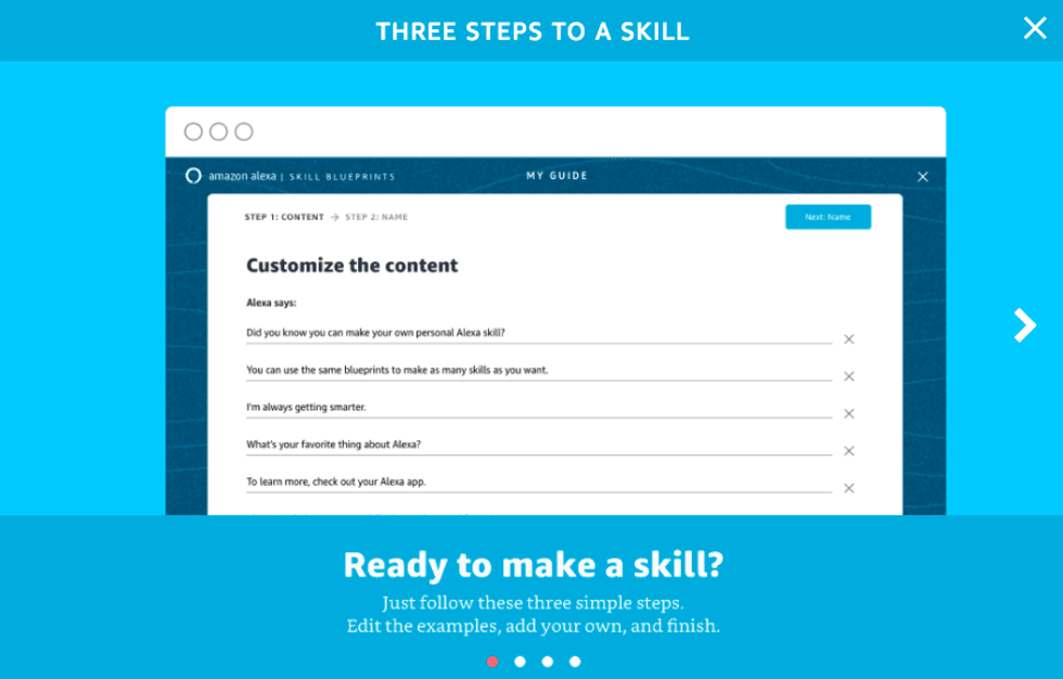 Amazon released a new feature called Blueprints, which streamlines Alexa Skills down to a fill-in-the-blank set of commands. You can't really make any skill you want: you have to choose between one of 20 options in four different categories: Fun & Games, At Home, Storyteller and Learning & Knowledge.