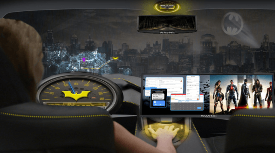 An image produced by Intel shows how a car could project AR experienced onto the windscreen, where Gotham City is displayed, along with the famous Bat-Signal lighting up the virtual sky.