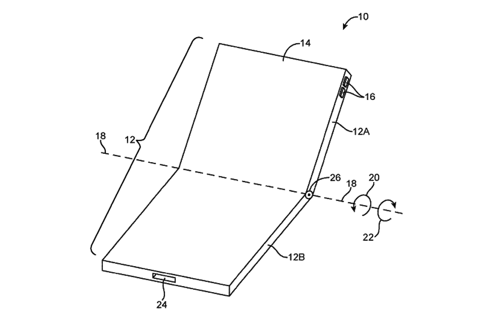 Helpfully, the patent filing also includes several sketches of what such a folding device could look like. These show a phone-shaped device which folds in half, but the fold is widthways instead of lengthways - the opposite of how the Samsung Galaxy Fold works.