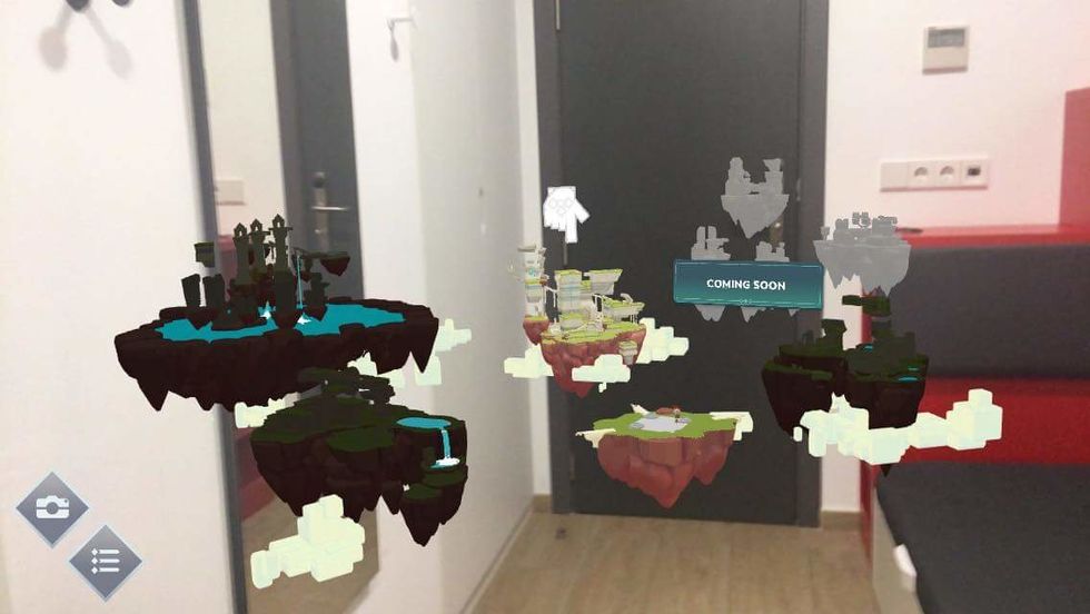 When you first open the app, it'll tell you to aim your camera at a location where you'll be playing in and confirm the spot. Then, the game will let you choose a world to explore and play in AR — you'll also see that some worlds are gray and marked "Coming Soon." Hopefully, there's more to come because I'll probably be done with most of them by the end of this week.