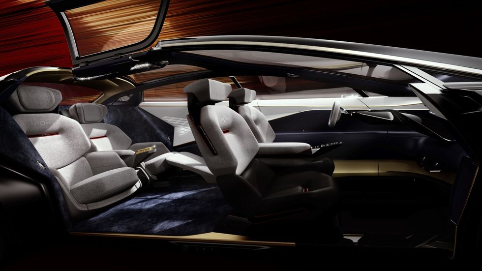 The concept shows off what can be possible with electric drivetrains, as the small motors, floor-mounted batteries and lack of bulky, complex components mean car designers can treat the interior as a blank canvas.
