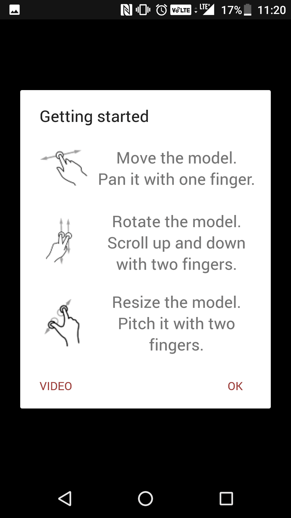 When you first open the app, there's a short tutorial on how to work with the models. You move and pan the model with one finger while rotating it requires two fingers. To resize, you simply pinch the model like you would with a regular photo.