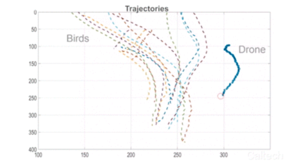 Research into the autonomous drone system is being carried out at the California Institute of Technology (Caltech), and is focused on teaching the autonomous flying machines how to herd the outlying birds of a flock, whose change of course is then mirrored by those towards the center of the flock.