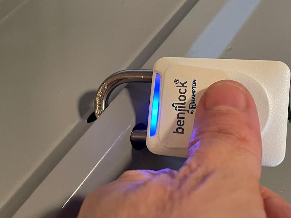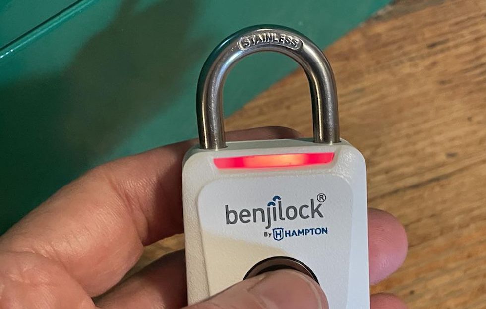 The BenjiLock Fingerprint Sport Padlock was pretty reliable. I found I could get the lock open most of the time with the fingerprints added to the system. The sensor though is very particular. If I put my finger on it at an angle, for example, it would respond with a red light — and not accept the print. I needed to press the way I had programmed. That's something to note. It was often fun, though, to test and see that other fingerprints — like my husband's — would not operate the lock.