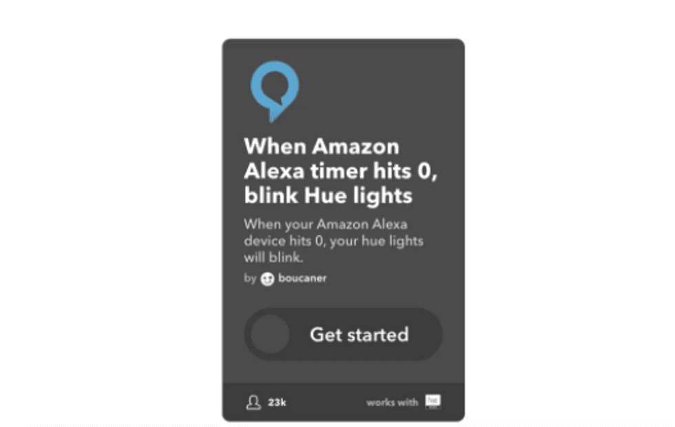 Perhaps my favorite applet, as someone who cooks a lot, is this one which lets you set a timer for your Hue. We've all done it—forgotten something in the oven, but if you've got an Amazon Echo and Philips Hue lighting, you can use this applet to set a quick timer. Once the timer expires your Hue will blink a few times, giving you a clear visual reminder to check the oven. Of course, you don't have to be timing food, this applet will let you time anything you want and always give you a very noticeable indication when you're out of time.