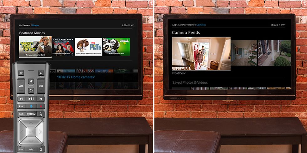 Like AT&T, Comcast enables system control from a TV screen, but only if you use an X1 cable-TV settop box and supplied remote. The TV also displays security-camera video. Through a built-in microphone, the X1's remote delivers voice control of basic Xfinity Home functions.