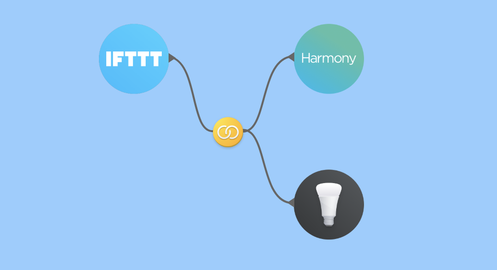 This flow sets the mood for movie night by switching on your TV and audio equipment, turning the TV input to your Roku (or whichever streaming device you have), then adjusting Philips Hue lights to a warm, dim glow.