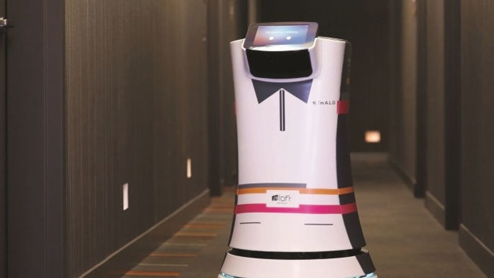 Employed by the Aloft hotel in Cupertino, just across town from Apple HQ, is Botlr, a robotic butler who delivers room service without any human help. The robot is 3ft tall and has a storage compartment measuring two cubic feet, giving Botlr space for delivering forgotten essentials like toothbrushes and plug adapters, and snacks.