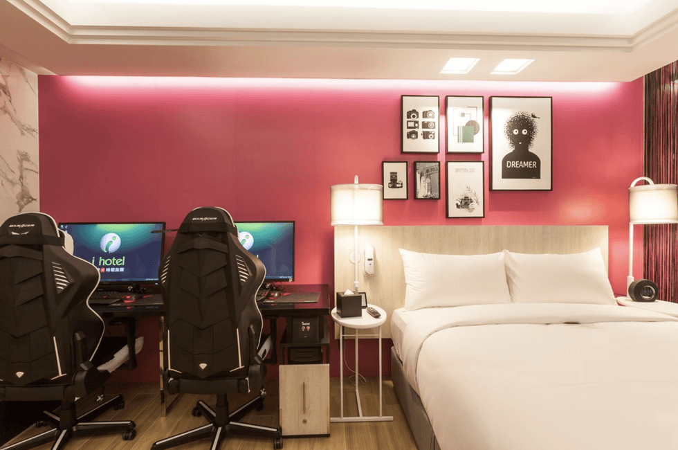 Taking things a step further, the i hotel in Taoyuan District, Taiwan has two high-end gaming PCs in every room, complete with gaming mice and keyboards, 32-inch monitors, and a 46-inch television.