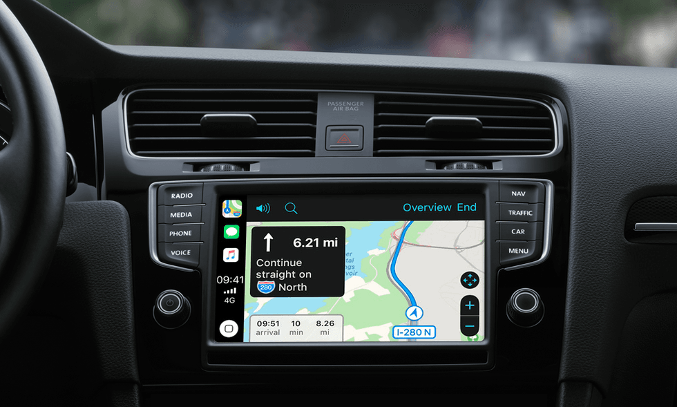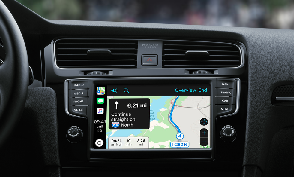 CarPlay, which shows an iOS interface on the dashboard display of cars from a wide range of brands, is a convenient way to access your phone's contacts, music, maps and other select apps while keeping your hands on the wheel and eyes on the road. CarPlay can be controlled via the car's existing touch screen and buttons, and by voice commands via Siri.
