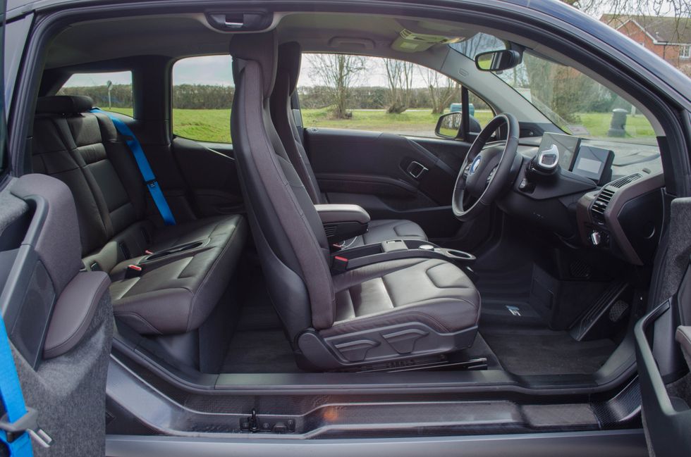 That said, the rear doors cannot be opened without the front doors also being open, so you can't quickly drop someone off from the back seat without someone in front opening their door, exposing the rear door's hidden handle. Rear seat space is adequate for a car of this size, but tall adults might find the i3 uncomfortable on a long journey, and there is no middle seat.