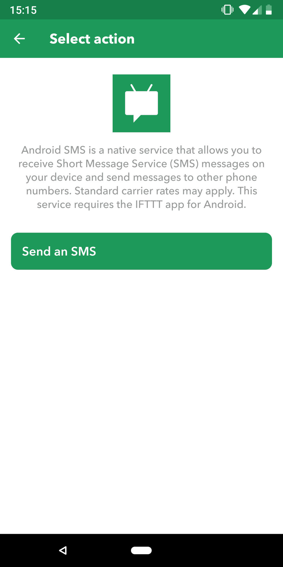 On the same list of apps we saw earlier, scroll down (or search) 'Android SMS'. Tap it, then on the next screen tap 'Send an SMS'.