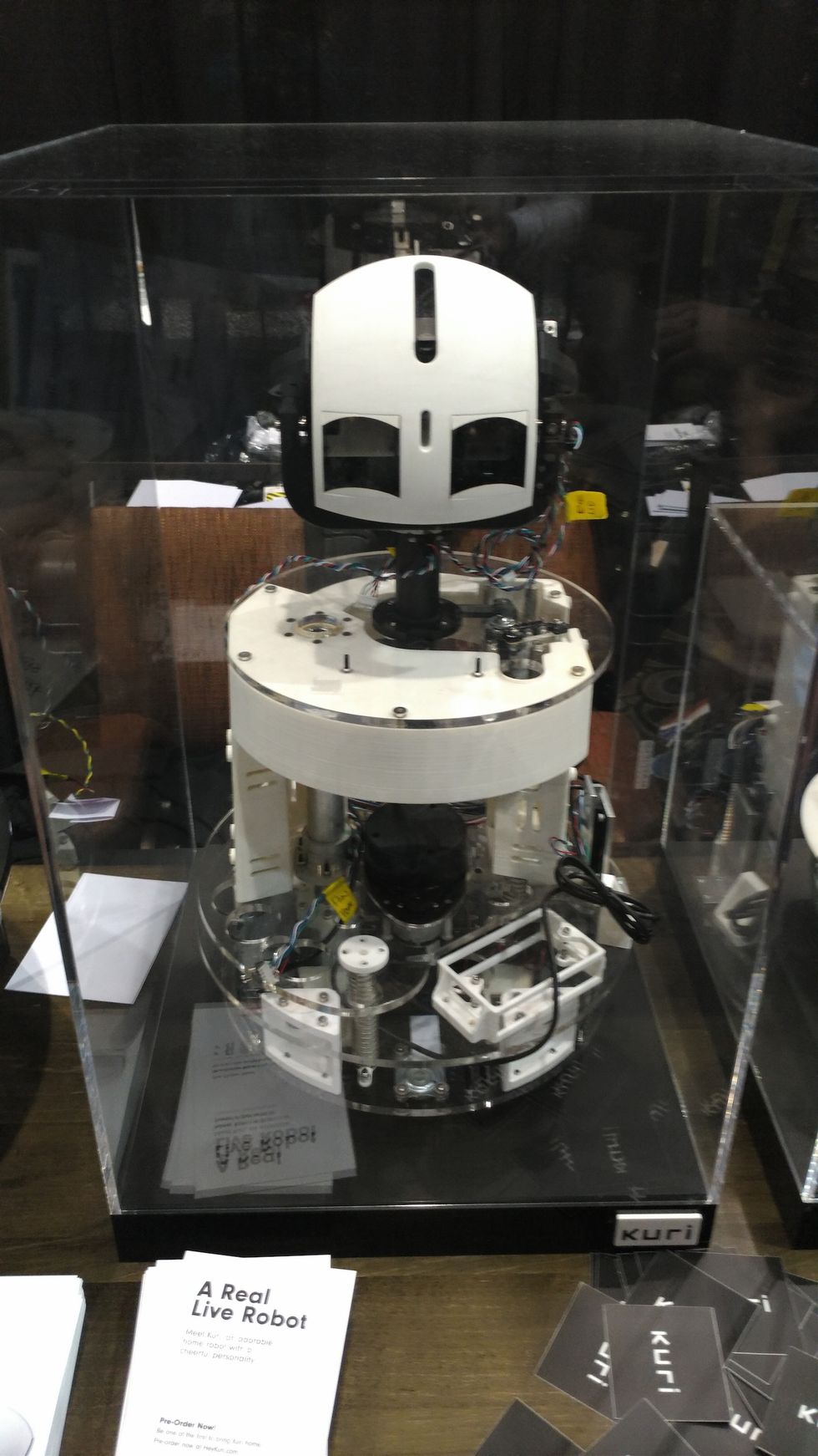 With two of its co-founders coming from Bosch Advanced Research, Kuri Robot is built from the ground up with solid robotics. Kuri comes from Bosch's Mayfield Robotics team. The device has four microphones allowing Kuri to locate sound, react to voices, even detecting unusual sounds to know which way to turn. A camera and speaker is also on Kuri, as well as facial recognition. All of these help Kuri react to people around it, and helping Kuri develop a personality that the company says is "adorable and approachable, but still earnest and helpful like the best pets."