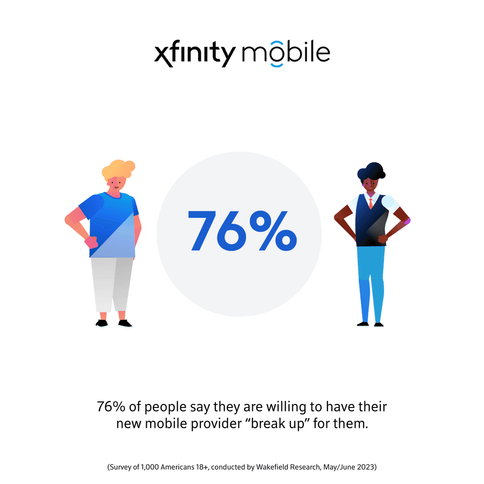 More than 3 in 4 people (76 percent) would prefer their new mobile provider “break up” with their old one for them. Xfinity Mobile is here to help. Customers looking to switch to Xfinity Mobile can walk into any Xfinity Store and ask for help to change their service, from swapping out a SIM card, porting a phone number, and even breaking up with a customer’s previous carrier.