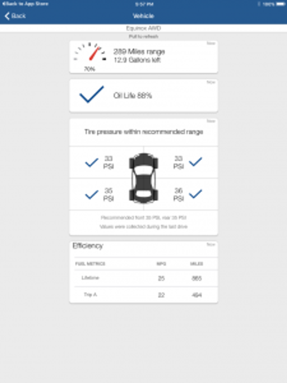 In addition to controlling the hotspot's configuration, you can also check on its status, seeing things like how much data or fuel you have left: two vital stats for a road trip. In addition to each tire's air pressure the app can remotely lock, unlock and start the car, but — unfortunately on cold winter mornings — not start up the heated seats.