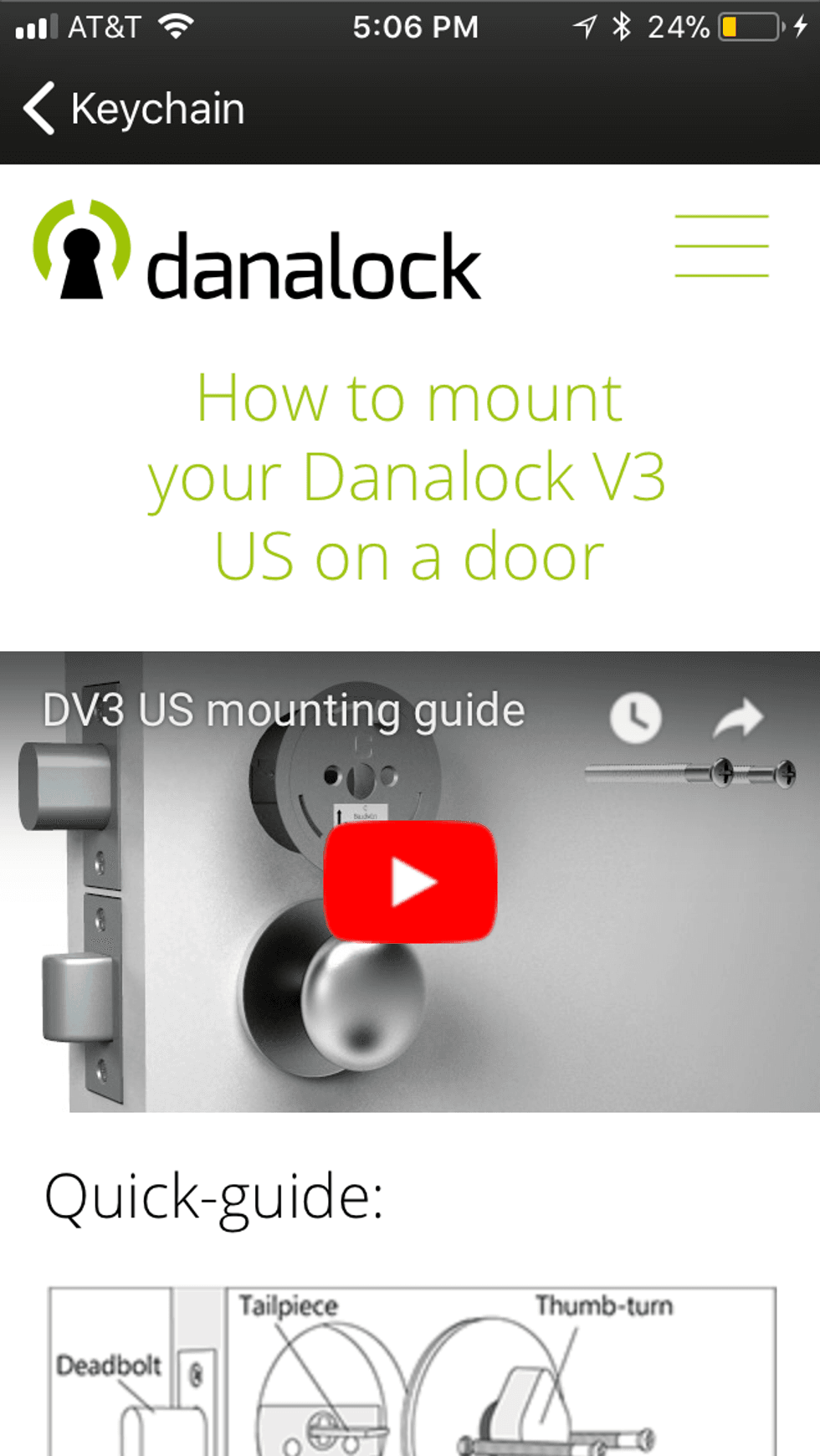 Finally, log on to the Danalock app and start configuring your lock. During this step, make sure your door is open and not closed. The mobile app will walk you though calibrating the lock. You can also go to Danalock's website and view the mounting video. It's self-explanatory and helpful.