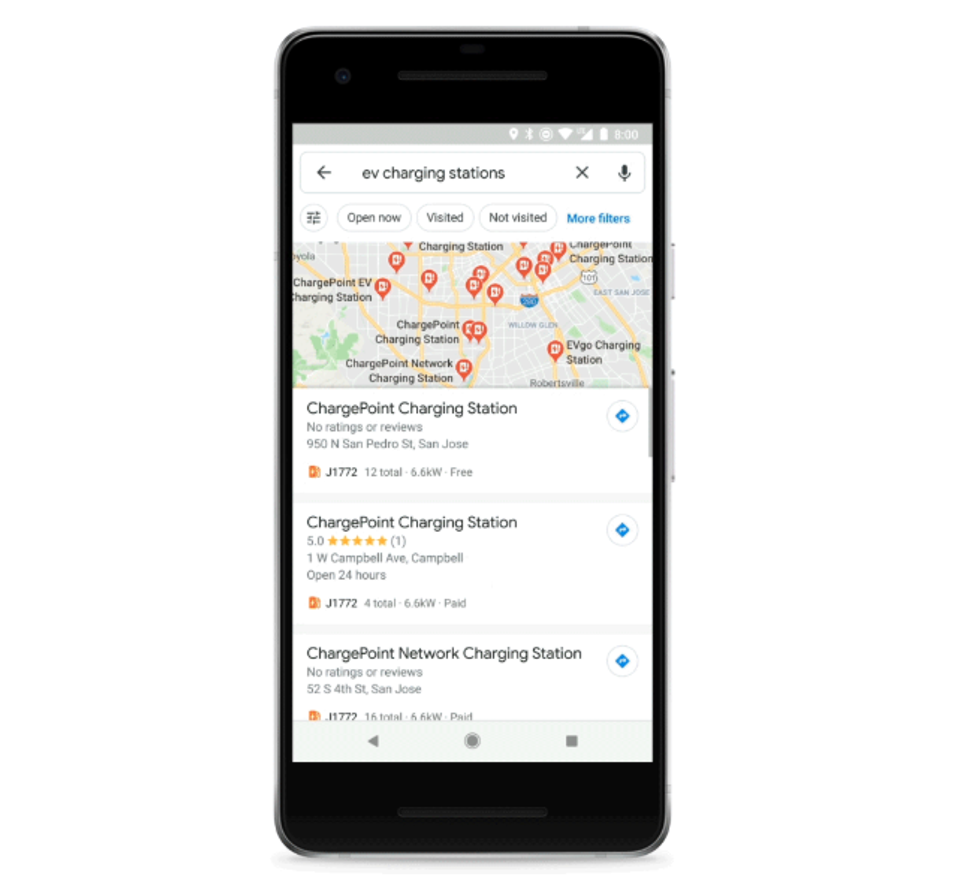 All electric car drivers need to do is search with phrases like "EV charging" or "EV charging station", and Google Maps will serve up the nearest options.