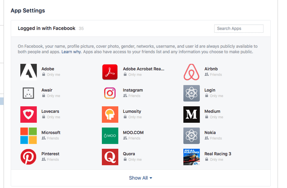 Head to this page and you might be surprised to learn just how many websites and applications have access to your Facebook data, including personal information and your friends list. Apps you used once then forgot about - but logged into using your Facebook ID - are listed here, among others.