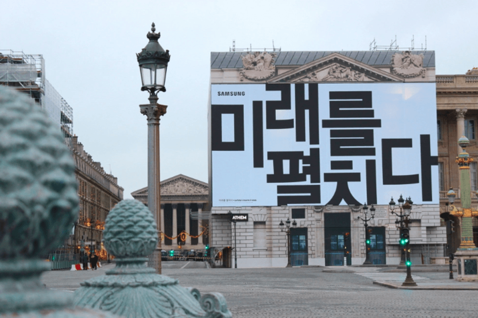 Now, a billboard has been spotted at the Place de la Concorde in Paris, France. Featuring text written in the Hangeul Korean script the billboard is translated as: "The future unfolds. February twentieth", according to Samsung itself.