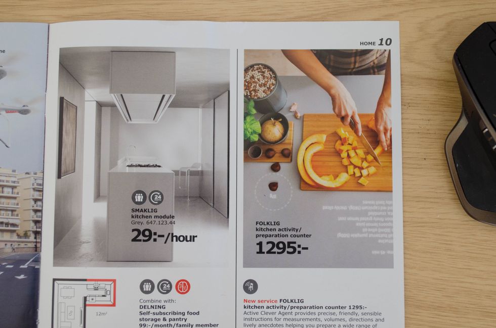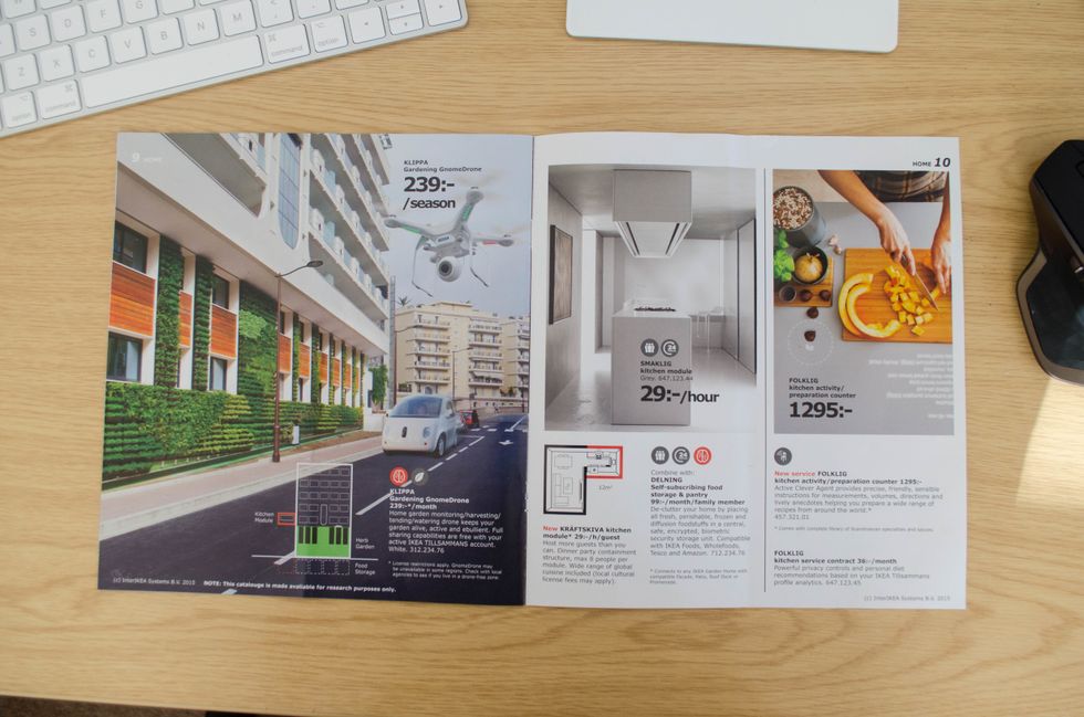 On the idea of subscriptions, Julian Bleecker, a design engineer who worked on the catalogue, said in 2015: "In our near future, an IKEA kitchen is 'self-subscribing', a peculiar, eyebrow-raising neologism meant to suggest a new weird context...in which our near future selves are comfortable with smart technologies that somehow know what's best for us."