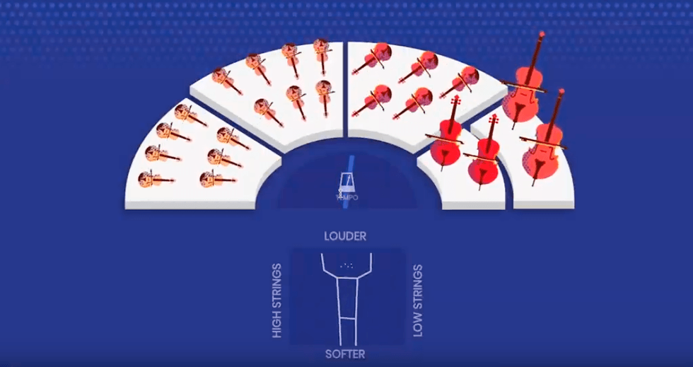 Move your hands, and the virtual orchestra plays through the music using hundreds of tiny audio files gathered from live instrument recordings.