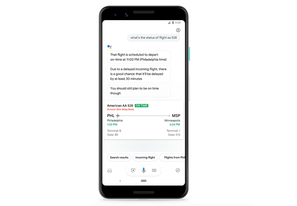 Additionally, when Google is 85 percent confident there will be a delay, the assistant can let you know when you ask about the flight.