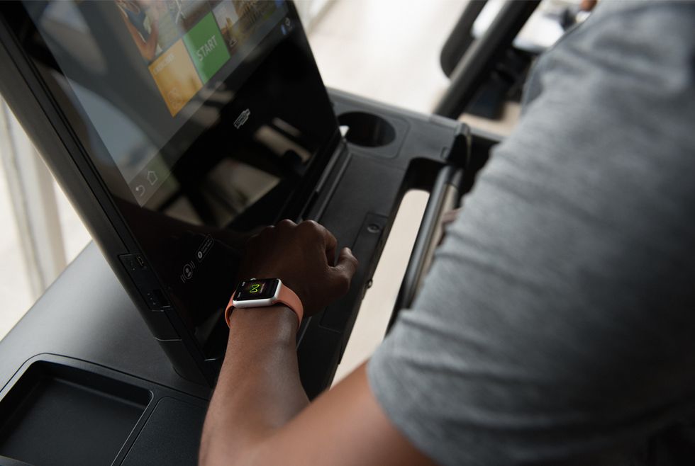 The new system, developed by Apple and called GymKit, lets Apple Watch wearers pair the device with treadmills, stair steppers, ellipticals and indoor bikes by tapping the smartwatch against a contactless pad on the equipment.