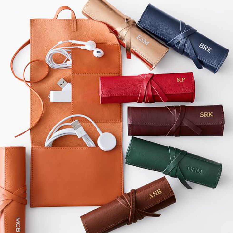 There's always that person at work looking for a charger or rifling through a bag, fishing for their own. Help that office-mate solve their charging needs with a sleek and stylish Leather Charger Roll Up from Mark and Graham. Made of supple and soft leather, this neat little roll up is priced at $49 and has three convenient pockets for storing chargers and can be monogramed free of charge for that added personal touch. It comes in a variety of colors and patterns to select from. It's so chic, you might just want one of your own.
