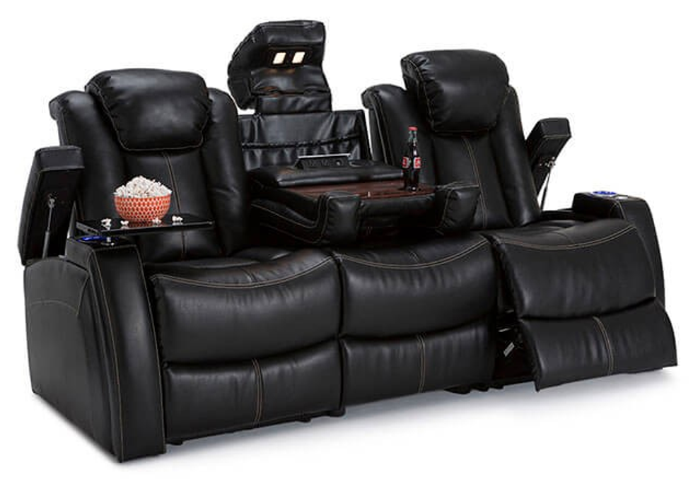 Technology can even extend to your couch with the Home Theatre range from Lane Omega. This customizable sofa can be built to include illuminated drinks holders, powered headrests, fold-out tables with USB ports, in-arm storage, banks of chargers for all of your devices, and a powered recline system.
