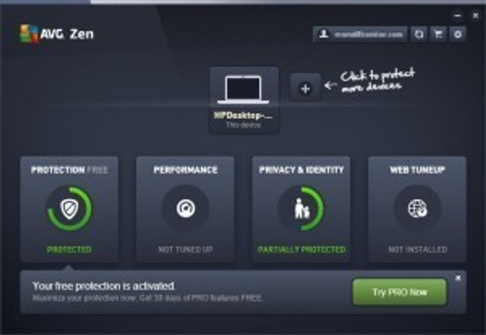 Step Three: Once the software is installed, the program will ask you to register using an email address and a password. (Pick a good one.) The next screen asks us if we want to protect more devices than just our laptop. We declined.