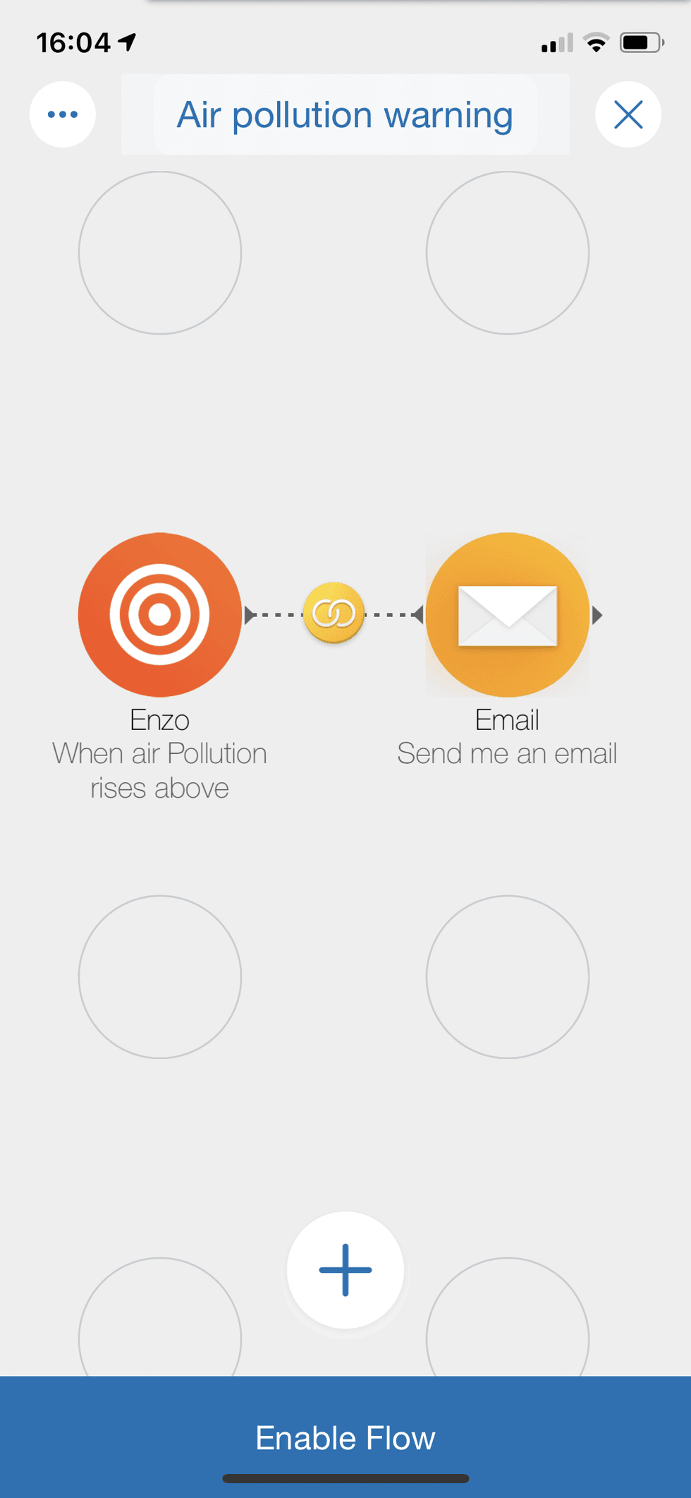I can then complete and enable the flow with just the one trigger and one action, or add infinitely more, configuring a high pollution reading to bring other devices to life, and send text messages or emails to other members of the household.