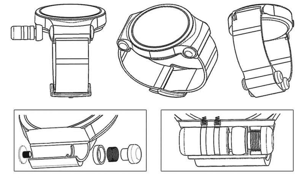 A newly granted patent, first discovered by LetsGoDigital, shows how such a solution might work. Sketches demonstrate how the tiny earbuds could slot into the case of a smartwatch. A second design shows how a Bluetooth handsfree headset designed to be worn in one ear could attach to the back of the watch strap, where the clasp or buckle is usually located.