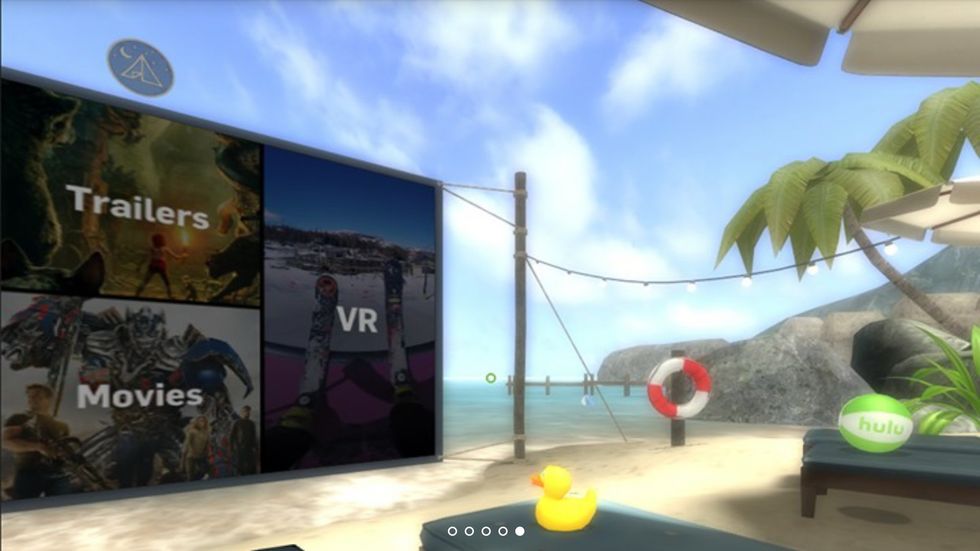 You can choose from four different viewing environments: a city apartment, beach, movie theater, and a void, which is almost like sitting inside a giant, blue golf ball with a movie screen in front of you. The apartment setting also offers a few different exterior views, including a city nightscape, the sea coast, and a winter landscape.