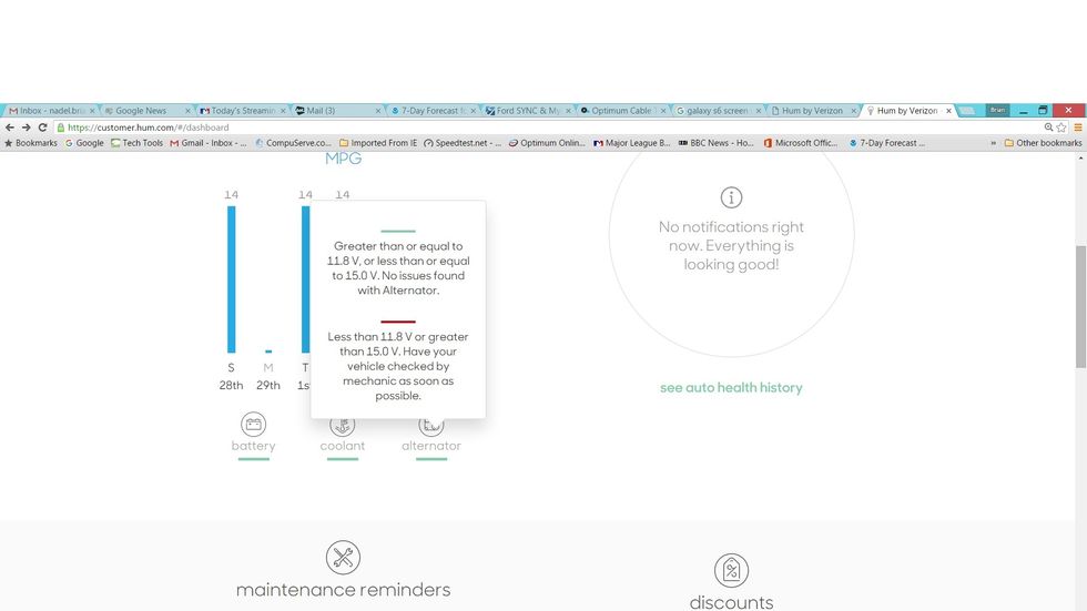 Like Ford's Sync 3, Hum tells you when your parking meter is about to expire—plus help you find where you actually left your car. When carrying bags and boxes through a limitless sea of cars at a mall parking lot, that tool is a big help. (In indoor parking structures, however, the tool didn't work as well.)