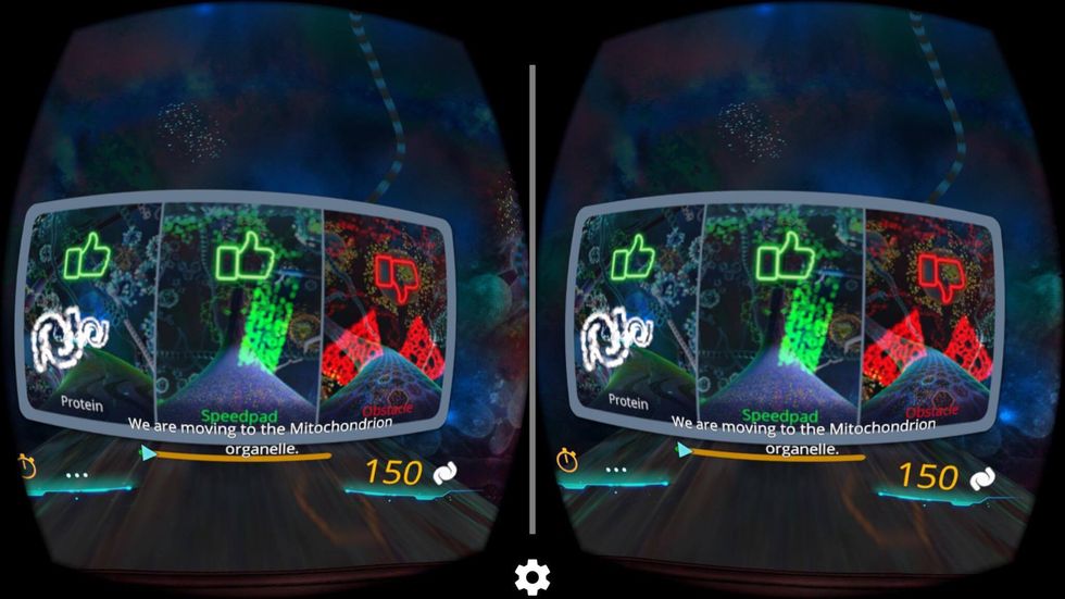 While the non-VR mode is still entertaining, what stood out to me the most in VR is the detailed and colorful interior you see as you race down microtubules. More than once, I was distracted from dodging obstacles as I kept looking at the surroundings—and then accidentally tilted my head into red obstacles.