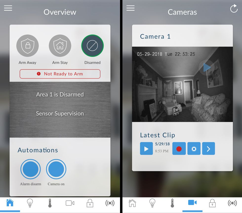 The app is divided into several sections, including overview, lights, thermostat, camera, lock, and sensor. In the upper-left hand corner of the app, there's a menu section where, if you're not logged in, you can access a number of handy videos. However, you're asked to choose between videos targeted at homeowners and those targeted at the pro dealers. In terms of design, it would have been better to offer only one set of videos to consumers to confuse them. (In fact, if you choose the pro dealer videos, a warning pops up with a message telling you should never try to alter or even access the dealer settings. In my view, it would have been better to exclude such videos that might confuse users.)