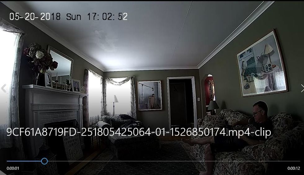 Our installation team set up TruVision's 1080p IP Wi-Fi Desktop IR Camera as the security camera for the system, which as the name indicates allows for 1080p HD resolution video (as well as lower resolutions), and has a field of view of 115 degrees. We set it up in the living room, facing the door. In our tests, we found the model did a fine job at recording as well as capturing real-time video and audio. As with many security cams, there was quite a bit of sharpening as well as some barrel distortion, due to the wide angle of view.