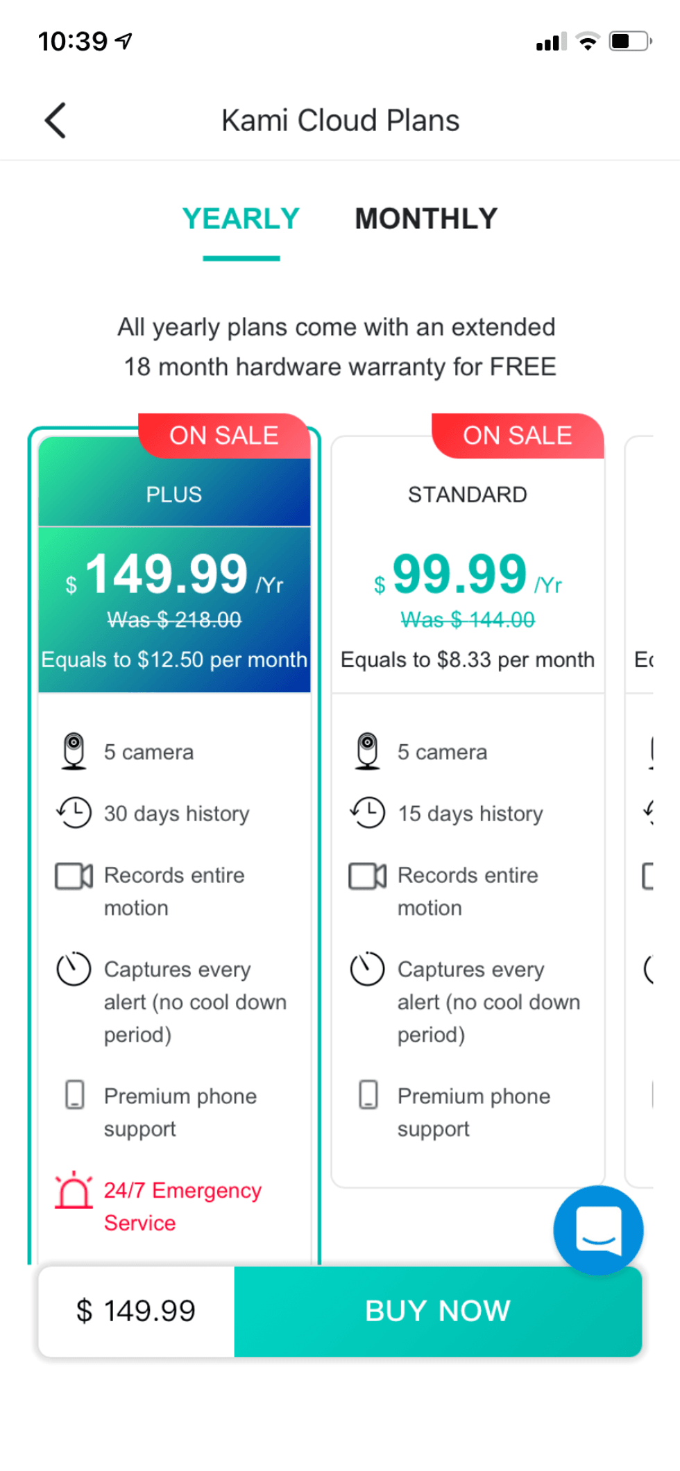 Each of these features are controlled in Kami Home app which is available for iOS and Android devices, and you can also sign up for the Kami Cloud Service. The company gives you a 7-day free trial on select Cloud Service plans, and their service plans are based on the number of cameras you're using, as well as the number of days you want to store from 7 to up to 30 days rolling. The cost starts at $39.99 per year ($4.99 per month) for one camera with 7 days rolling average for 12 months. Kami Cloud Plan Plus is the most expensive at $149.99 per year and the only plan that provides 27/7 Emergency Service. You can pay either monthly or yearly. If you choose to pay yearly, you will get an extended 18-month hardware warranty for Free from Kami.