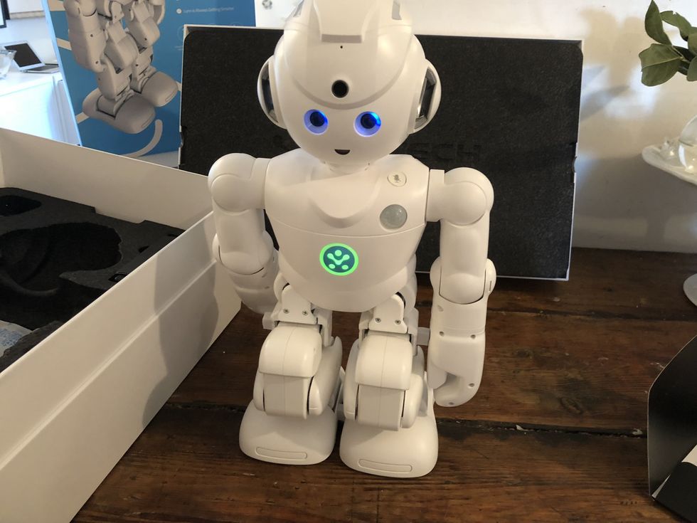 To actually launch Lynx, you need to stand him on a table top (which honestly didn't sound that safe to me for a reportedly walking robot) and have him positioned in what looked like something my trainer made me do years ago.