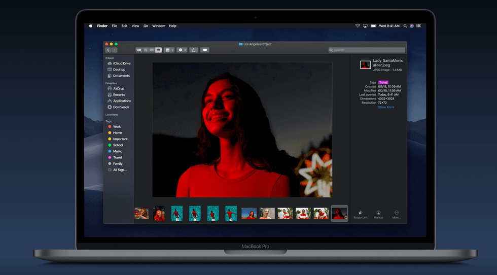 Anyone who needs to do light photo editing from their desktop is going to appreciate the updates to Finder. Here, you'll be able to see photos based on how they look, and see all their meta data which is just a fancy way of saying all the details that make up a file. For a photo, you'll see when it was shot, what it's tagged and even its dimensions and its resolution and tons more including what device you created the file on (like an iPhone or a Mac) and even the f stop of the digital camera.