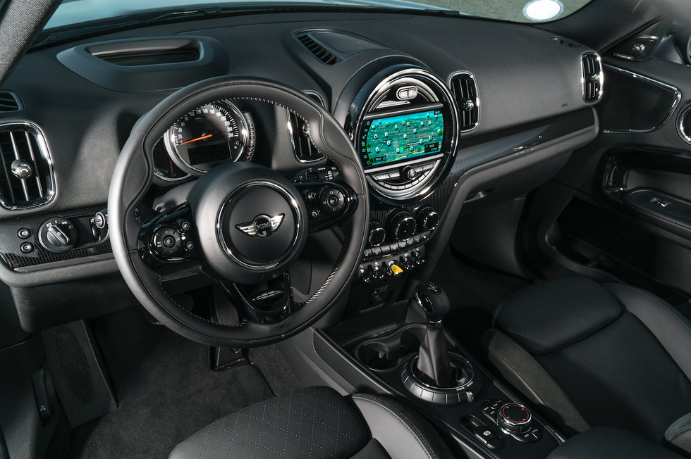 Back to the infotainment, and in the US there is a good amount of kit fitted to the hybrid Mini Country as standard. This includes heated mirrors, parking sensors with rear camera, and Mini Connected. This software suite hooks up to an app for Android and iOS which lets you enter an address on the phone and have it automatically shown up on the car's navigation system (which uses maps from Here) when you next get in. The app doesn't come close to that of Tesla, which provides control of the climate, heated seats and more, but is a welcome free addition nonetheless.