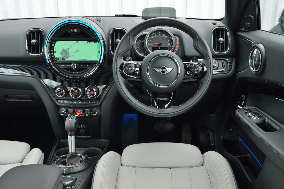 All told, the technology on offer in this Countryman — excluding its hybrid powertrain — is identical to that offered by the rest of the Mini range. At its heart, this means the excellent BMW iDrive with control dial is complimented by a cabin full of retro switchgear which suit the car and its character perfectly.