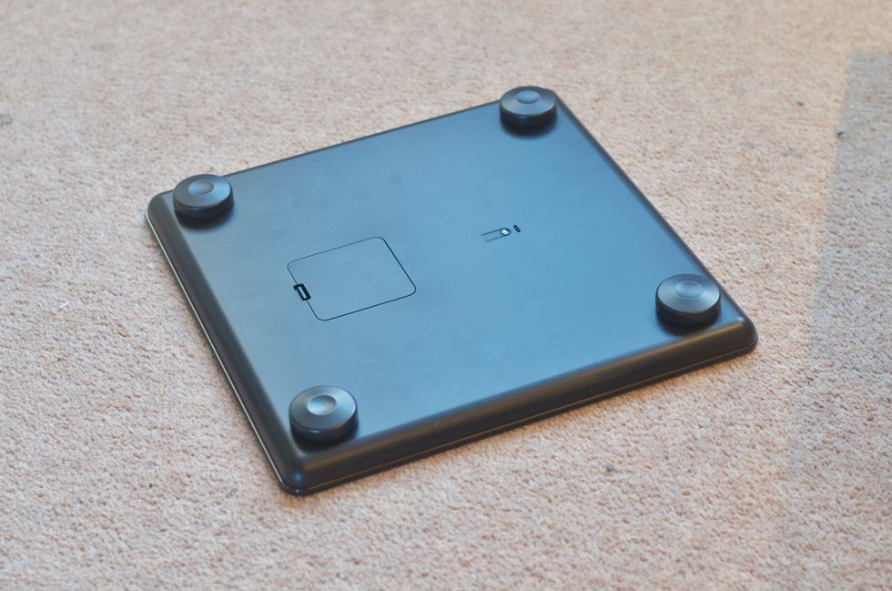 Underneath is where you will find a single button for connecting the scale to your Wi-Fi network, and a compartment for four AAA batteries.